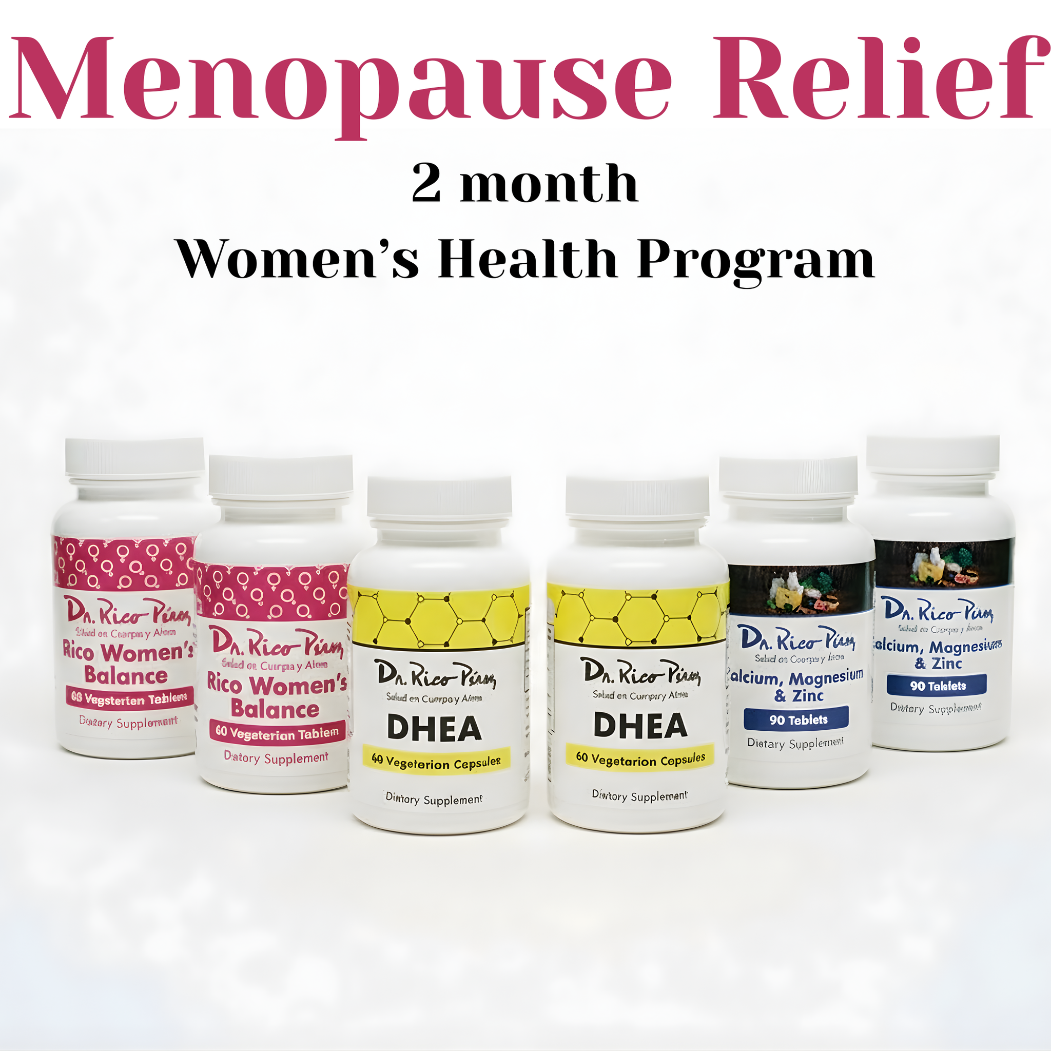This comprehensive system includes three key supplements — Women’s Balance, DHEA, and Calcium Magnesium Zinc — carefully chosen to support hormonal health, bone strength, mood stability, and overall vitality.